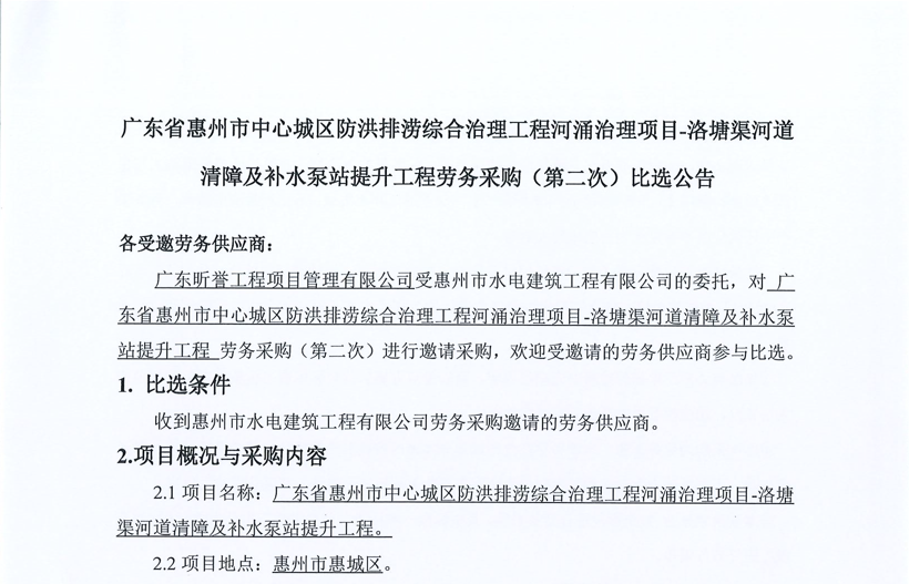 惠州市增江龍門段治理工程施工(一標(biāo)段)勞務(wù)采購中選候選人公示……